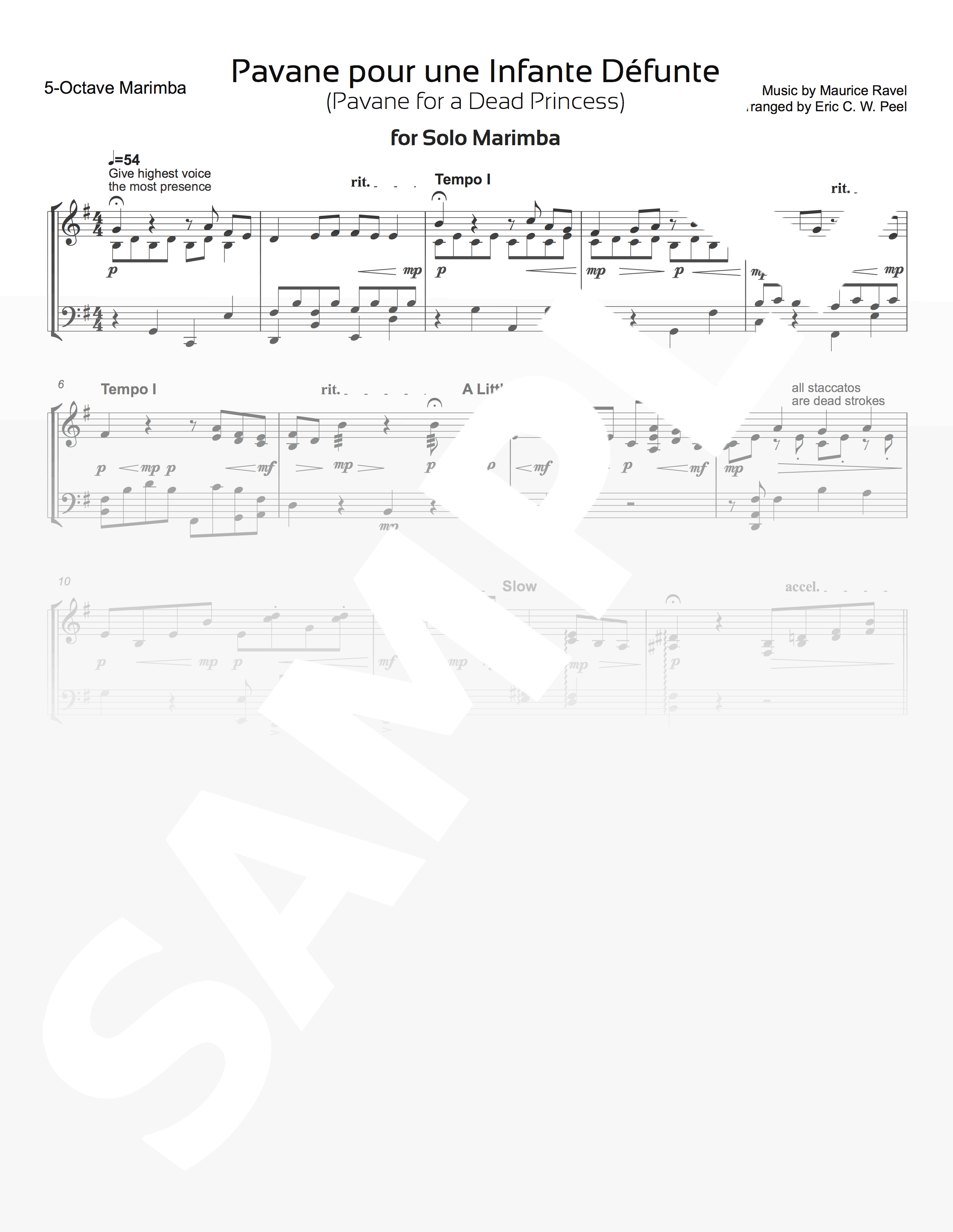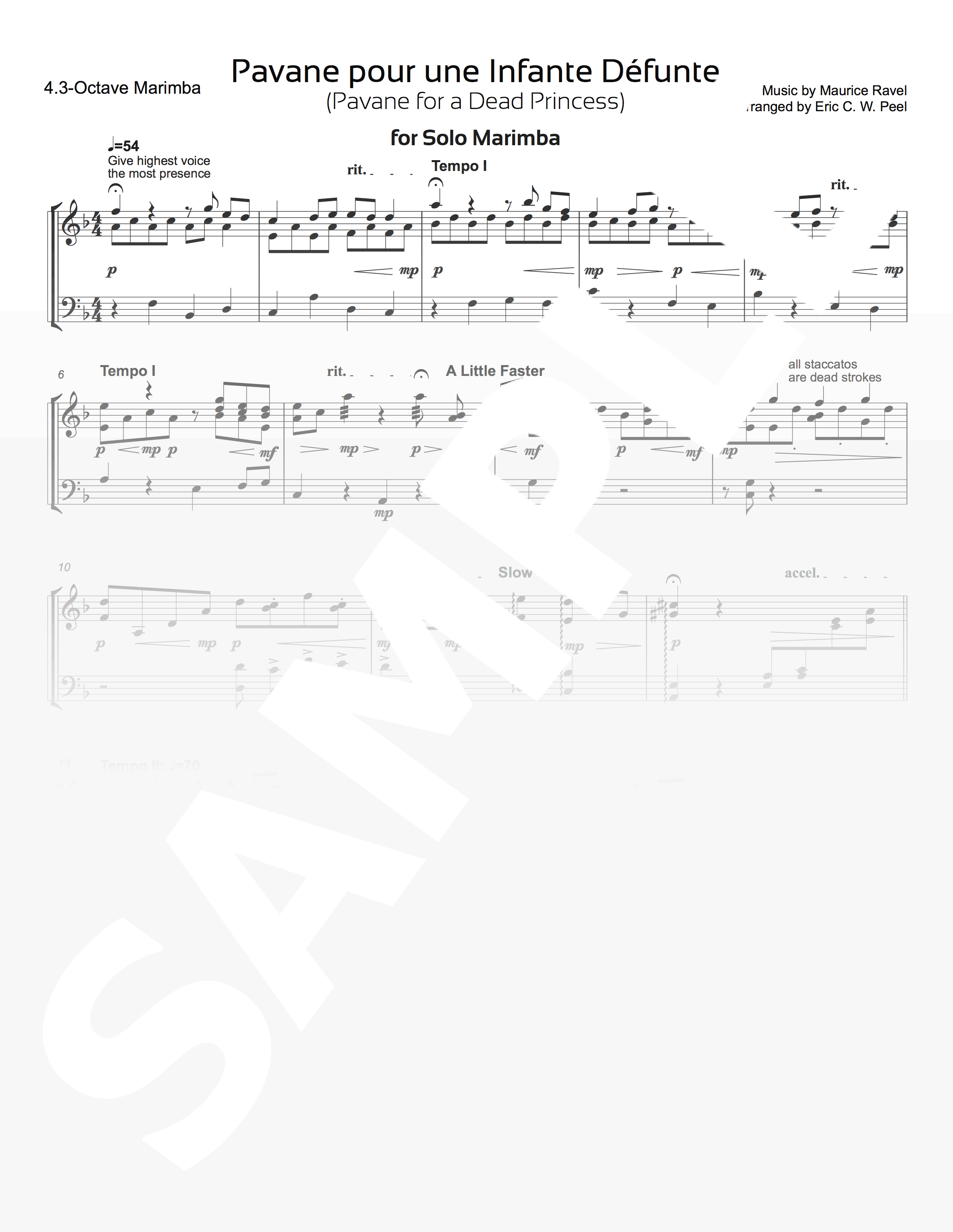 Ravel was known to be very critical of his and other’s pieces and playing. The performer of this solo should be encouraged to imagine what Ravel would say if he heard his Pavane performed on marimba. Would he respect a marimba arrangement?